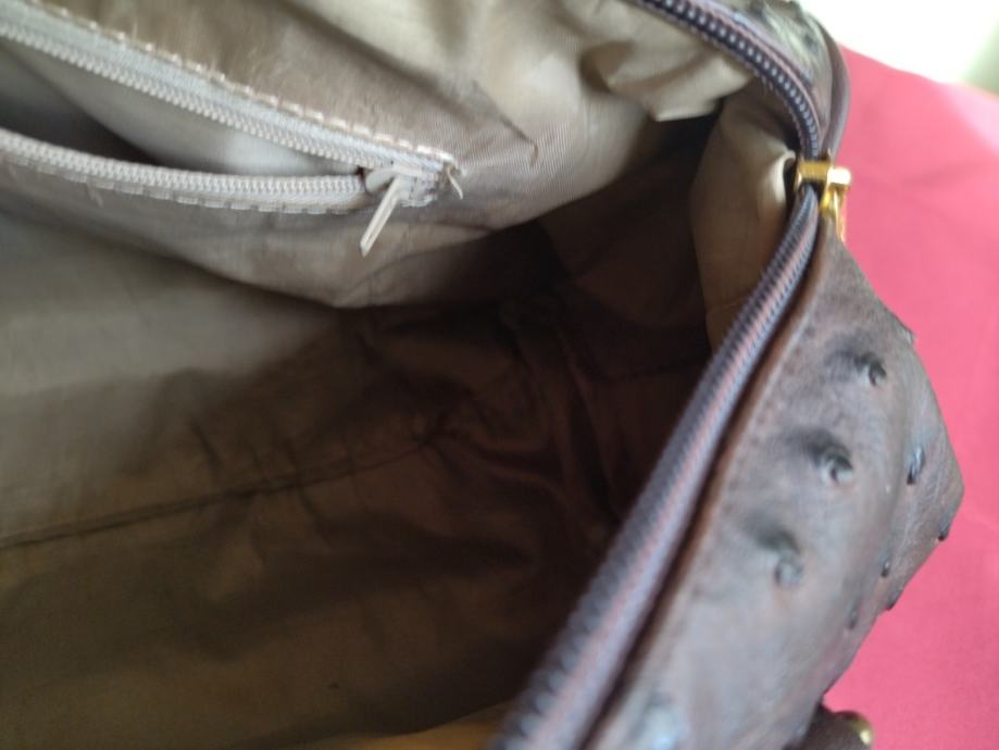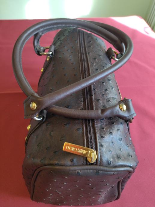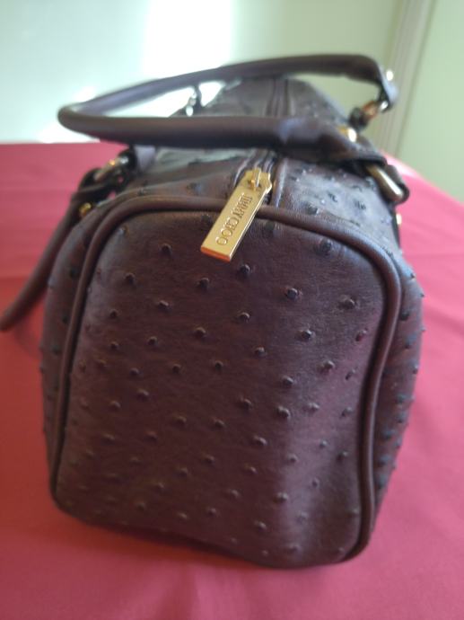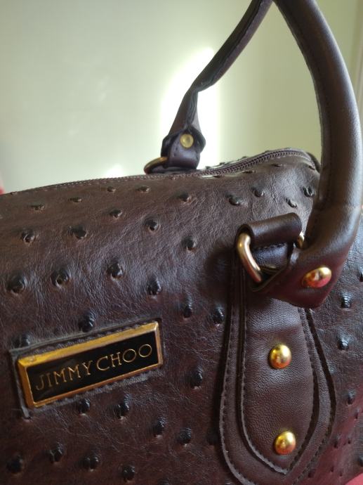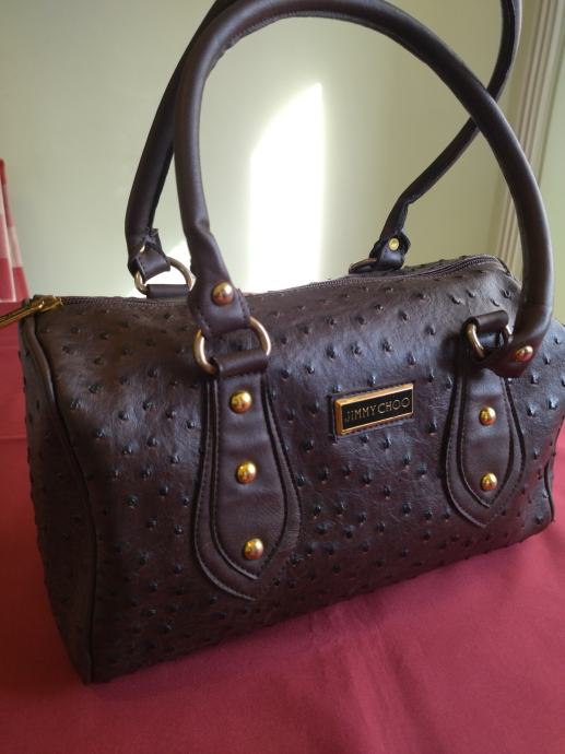 Torbica nije original brenda Jimmy Choo. Izrađena od eko kože u imitaciji nojeve kože smeđe boje.