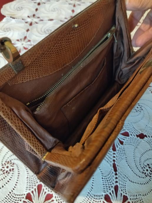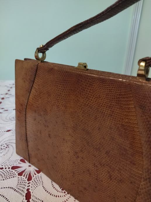 Retro torbica od kože guštera u svjetlijoj smeđoj boji.