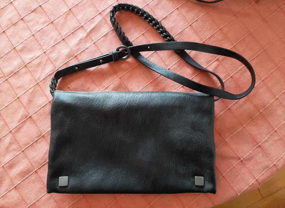 Mala crna torbica sa remenom (moze se i skinuti pa biti pismo torbica)...zgodna za neke prigode ili za svaki dan ko voli manje torbice...