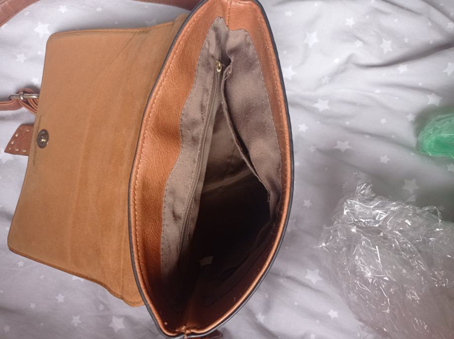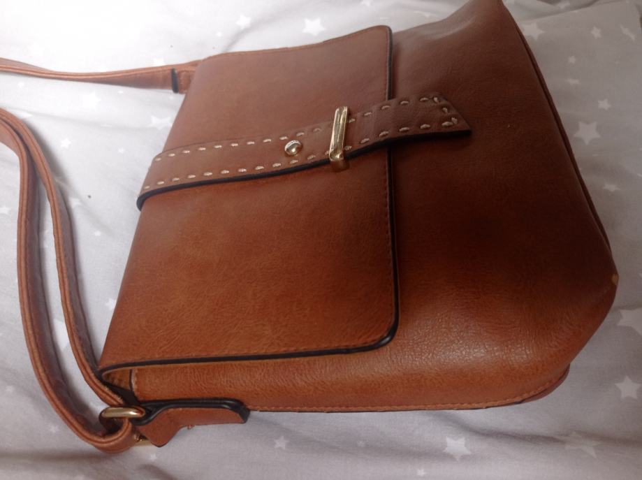 20x25 cm, debljina 9-10cm, remen podesiv. Boja smeđa