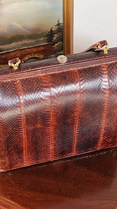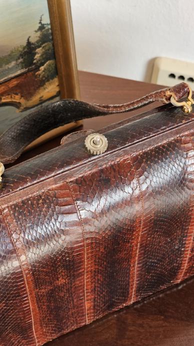 Smeđa vintage torbica od prave zmijske kože, primopredaja u Zagrebu i okolici ili dostava.