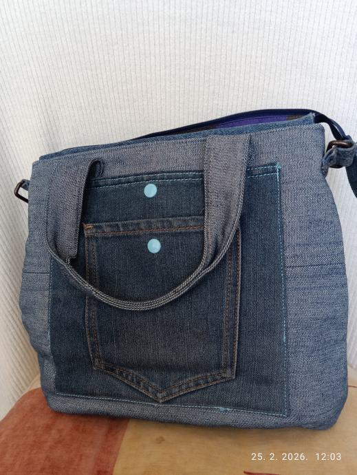Torba od trapera, podstavljena. Veličina 33 x 27 x 10 cm.