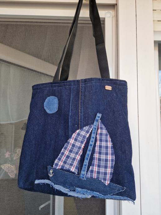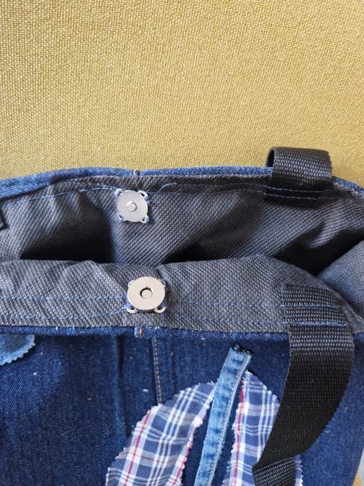 Unikatna I originalna torba od recikliranog džinsa.Aplikacije punjene lavandom .Postavljena ,zatvaranje magnetom.