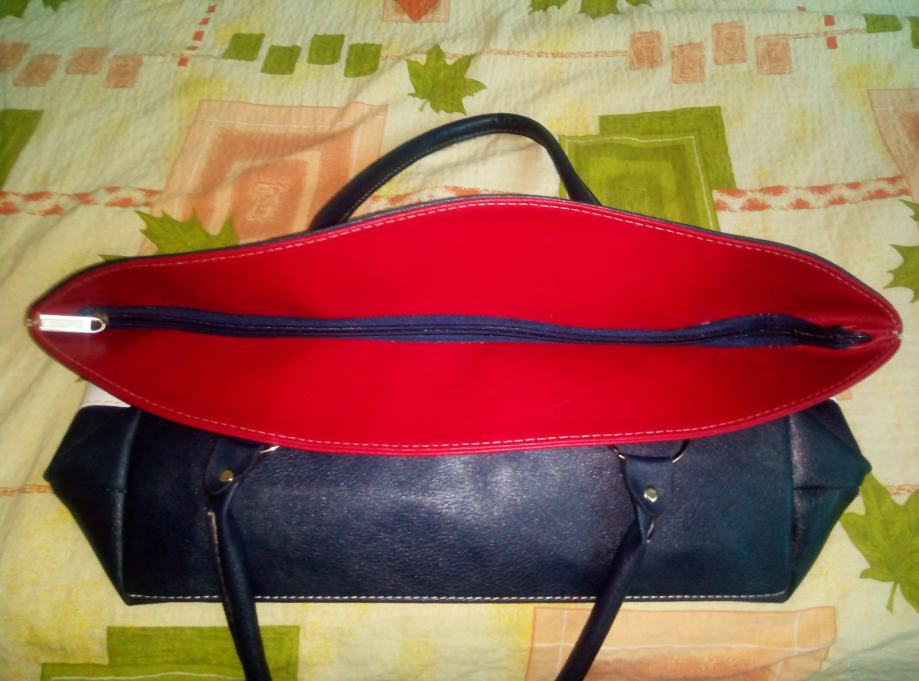 Velika crveno-bijelo-plava torba, dobro očuvana.