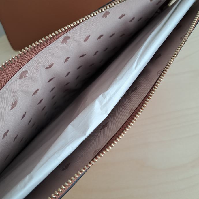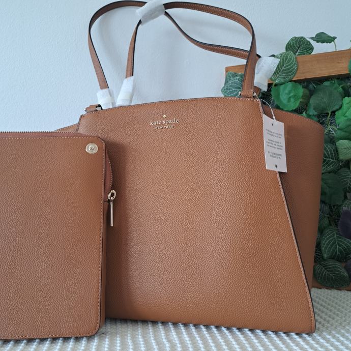Model brenda Kate Spade New York izrađen od prave kože u predivnoj konjak smeđoj nijansi. Službeni naziv boje je Warm Gingerbread Brown – bogata, topla i vrlo nosiva tijekom cijele godine.
