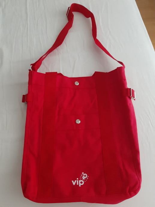Prodajem novu crvenu torbu. Ima dvije male ručke i jednu veliku ručku.