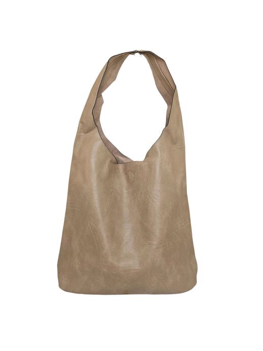 Velika vrećasta torba bež boje s čvrstom ručkom i unutarnjom torbom