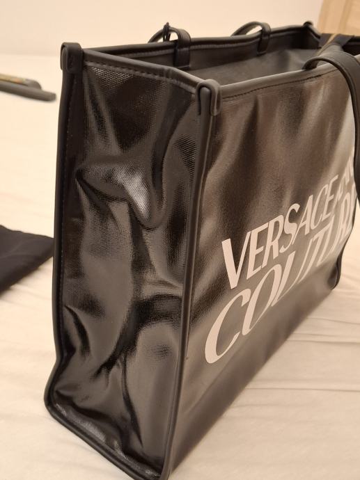 Prodajem novu nenošenu original torbu marke Versaci Jeans Couture Tote sa etiketom, crne boje, kožna, mjere. visina 34cm, dužina 42cm, širina sa strane 14cm. Torba ima patent pa se zatvori. Ručke su fiksne, dolazi sa crnom velikom vrečicom u kojoj je kupljena.Torba je dosta velika i dosta stvari stane u nju.