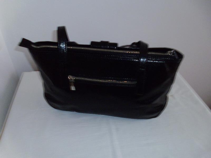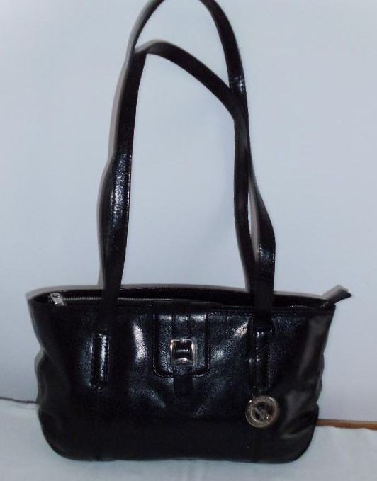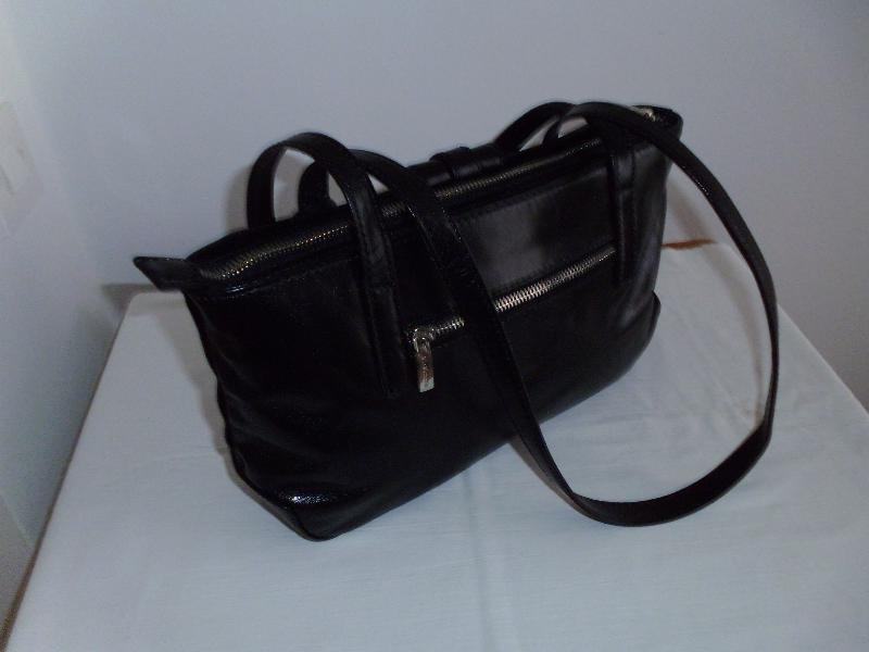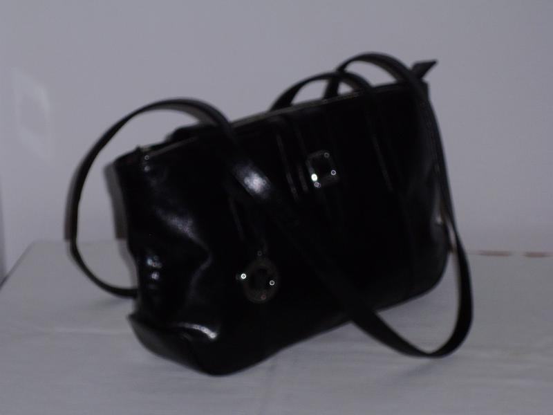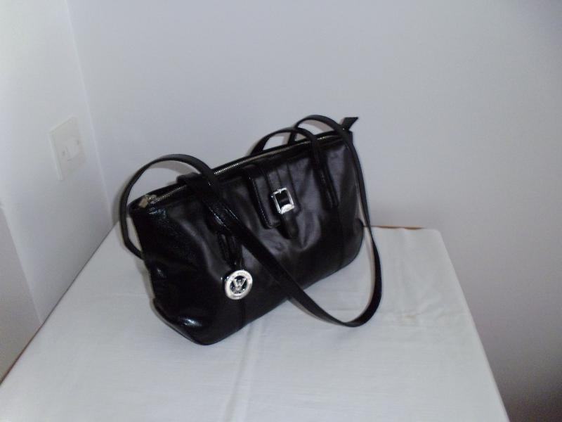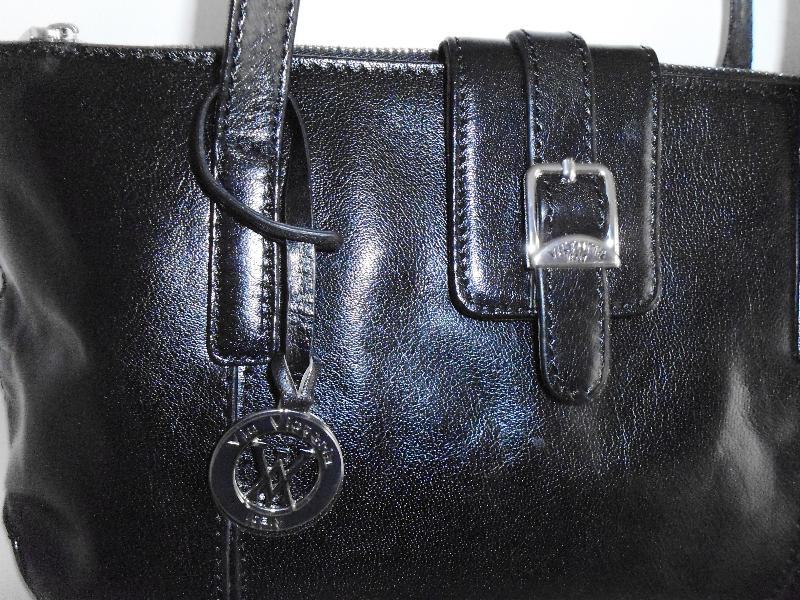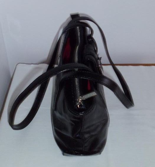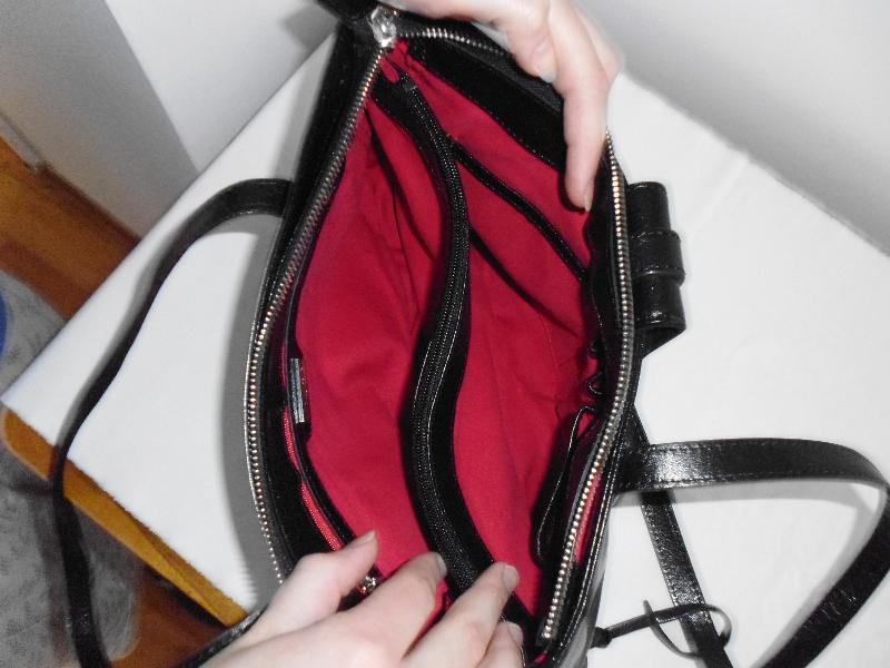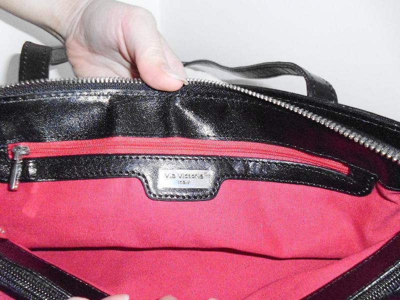 " Via Victoria " ženska crna torbica od prave kože, podstava u crvenoj boji, puno pretinaca, dvije ručke dužine 74 cm, dim. 38 cm x 19,5 cm x 8 cm, kupljena u Njemaćkoj, gotovo ne nošena, kao nova.