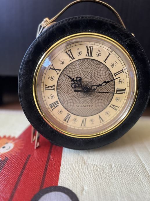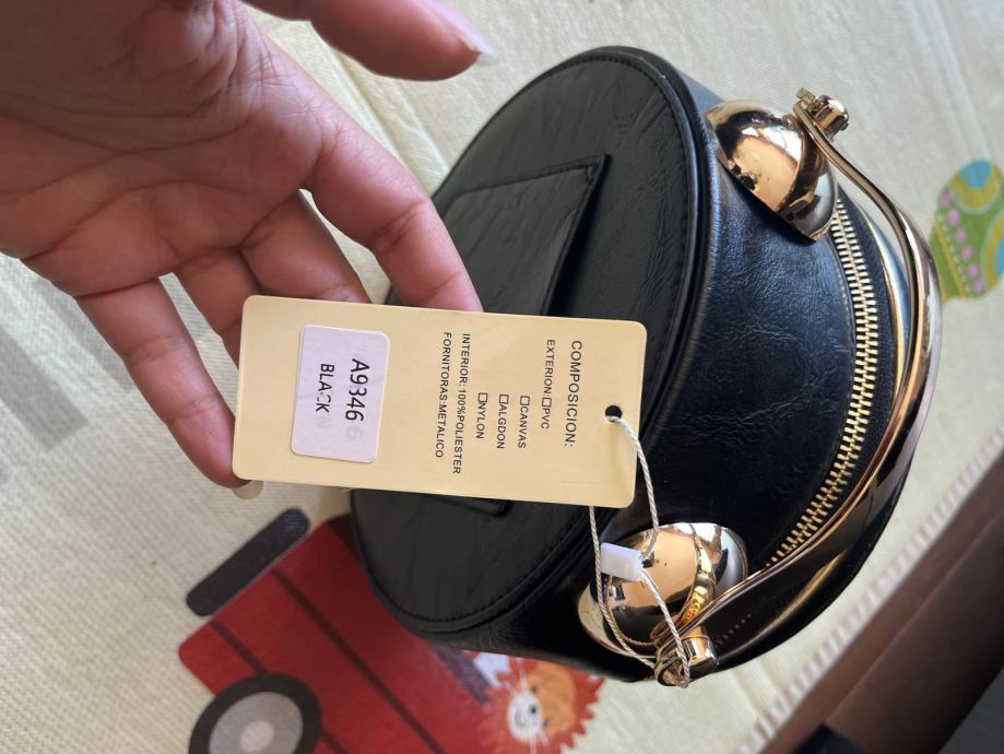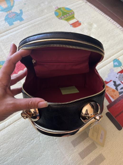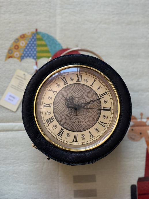 Vintage crna torba u obliku sata / sat torba. Torba je nova, nije nošena, ima unutra i mehanizam da se stavi baterija ali nisam isprobavala kako radi i kako se navije. Dimenzije su otprilike 24cm visina, 20 cm dužina, 10 cm širina.