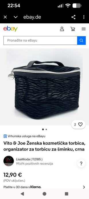 Vito & Joe Ženska kozmetička torbica, organizator za torbicu za šminku, crna.