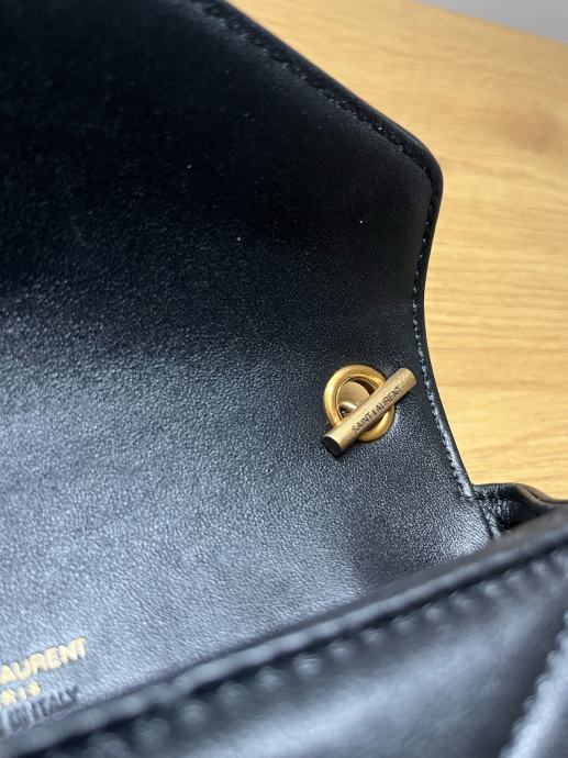 Torbica ima prepoznatljivi YSL logo i prošivene detalje