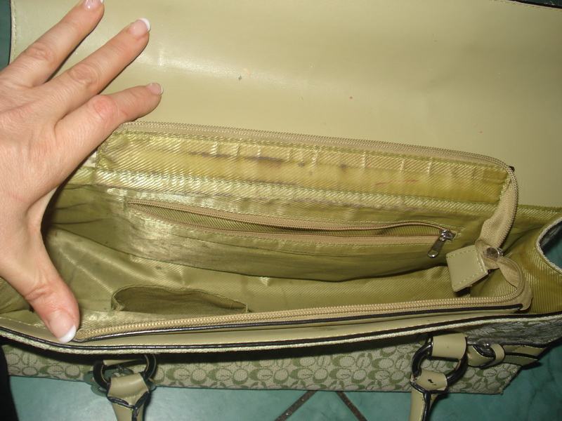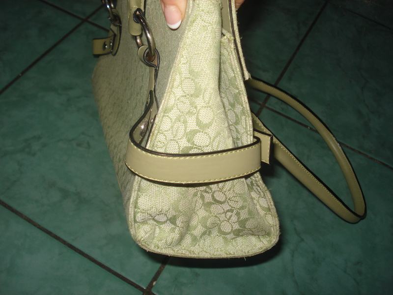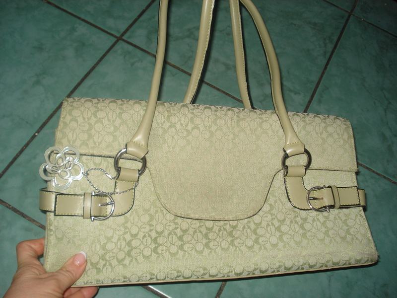 Zelena torba sa zanimljivim printom na tkanini. Torba je kombinacija platna i eko kože, damskog izgleda, nošena, ali ne puno.