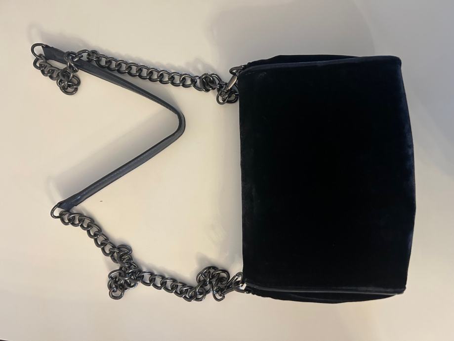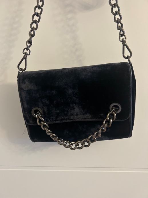Zara tamno plava torbica s lancem, materijal velvet(barsun)