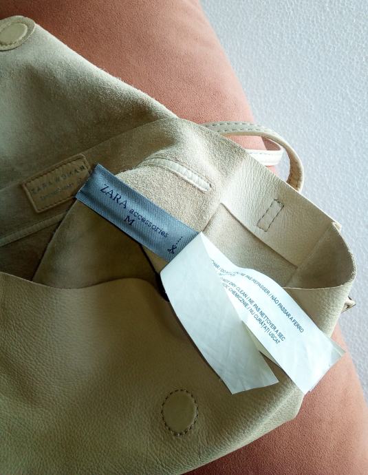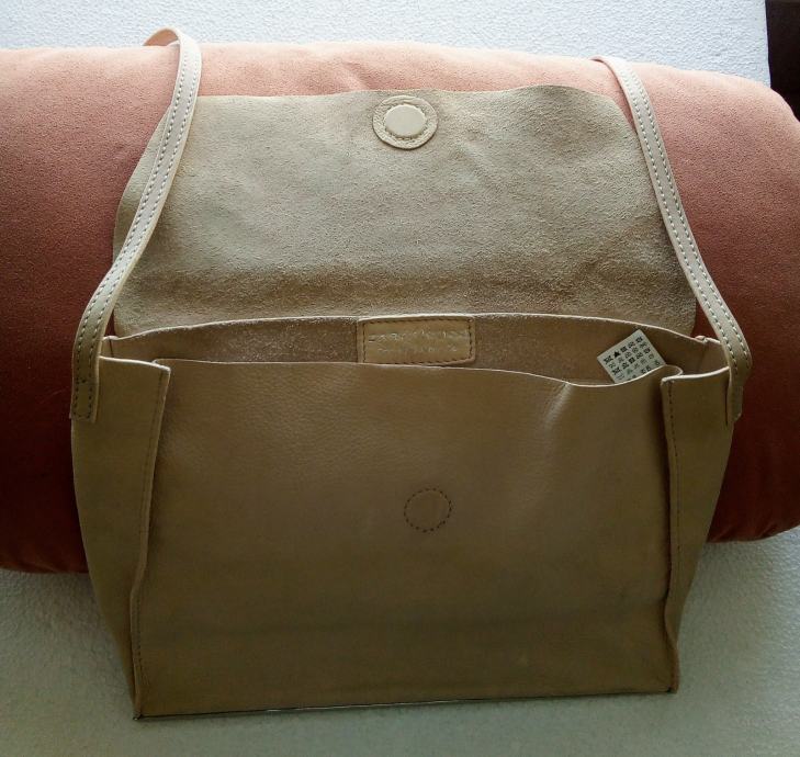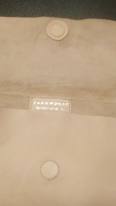 Lagana ZARA WOMAN torbica od prirodne kože, bež boje, za proljeće - ljeto. Na dnu okvir od pravog metala. Kopča je skriveni magnet. Dimenzije su 29×23 cm. Potpuno očuvana, jednom nošena. Sniženo sa 100 kn na 11 €.