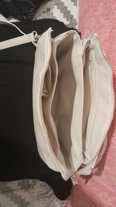 Prodajem žensku bež torbicu, dimenzije 24x19,novu,marke Mohito.Torba ima 3 pretinca,plus još jedan sa strane sa patentnim zatvaračem.Novo.