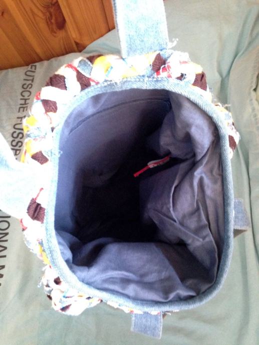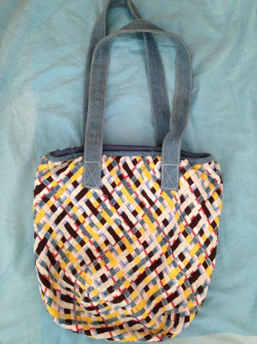 Prodajem žensku ceker torbu, naramenice su od trapera, a ona je išivena od vise vrsta tkanine. Iznutra ima jedan džep. Stanje je odlično.