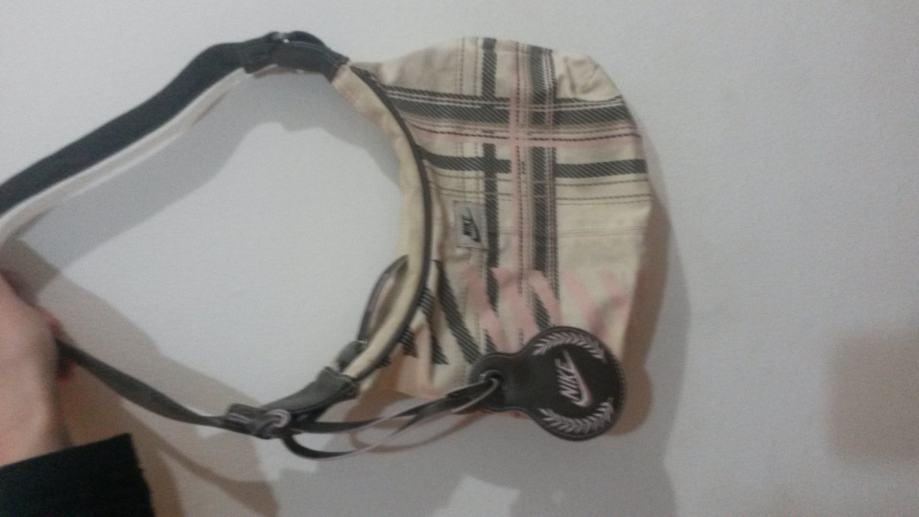Prodajem veoma uščuvanu Nike torbicu, bež-smeđe-roze boje (remen je smeđe boje). Unutrašnjost torbice je gumirana i ima jedan unutarnji džep.S prednje strane torbice je Nike znak i sa strane kao ukras , Nike kožni privjesak obrađen rozim koncem.Torbica je vrlo prikladna za djevojčice.