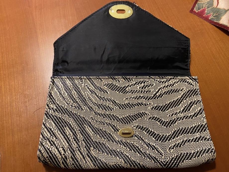 Zenska pismo torbica, par puta koristena, dimenzije 29cm (duzina) i 17cm (sirina), rebrastog uzorka.