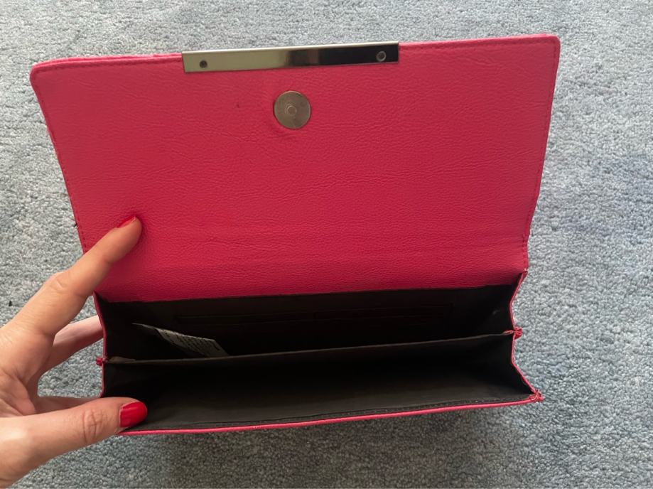 Zenska ruzicasta pismo torbica clutch