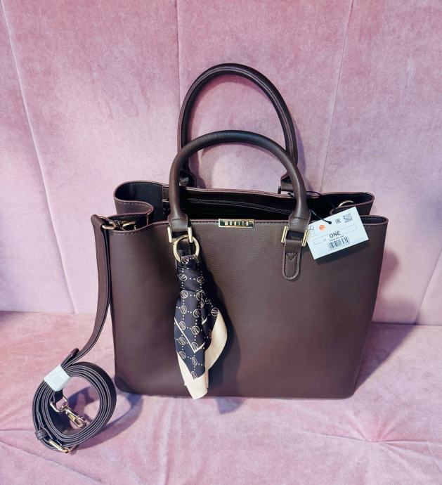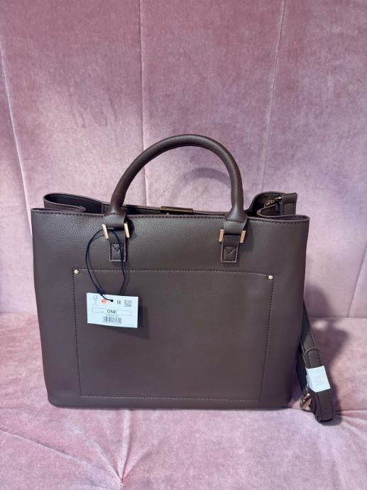 Prodajem novu prekrasnu žensku smeđu torbu marke Mohito. Sadrži jos etiketu. Može se koristiti i za poklon. Dimenzije: dužina 33 cm, visina 27 cm i širina 12 cm. Plaćena 40€.