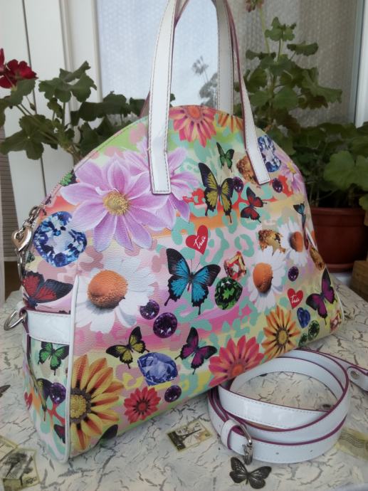 Prodajm lijep i moderan ljetni uzorak s cvijećem, leptirićima, dijamantima i TP, klasično osnovno snježnobijelo - visokokvalitetna eko koža + vodootporni PVC otporni na ogrebotine, lijepi srebrni metalni dekor i logotip tvrtke, svijetlo ljubičasta svilena podstava, udobna i prostrana veličina , Ukupni zatvarač s dugim zatvaračem, unutar jednog velikog džepa s patentnim zatvaračem i 2 otvorena džepa. Udobne, prilično duge ručke.