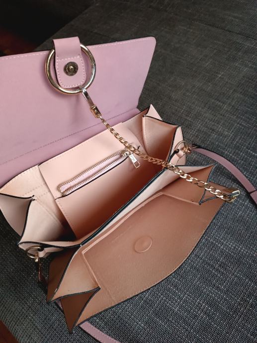 Prodajem elegantnu žensku torbu Chloé u lijepoj kombinaciji rozih nijansi. Torba ima prepoznatljivi Chloé dizajn s karakterističnim metalnim prstenom i lancem. Unatoč tome što je rabljena, u dobrom je stanju i savršen je modni dodatak za svaku priliku. Torba je ostala u ormaru nakon razvoda tako da ne znam ništa više o njoj)