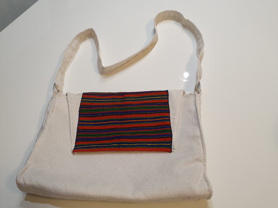 Unikatna ženska torba od domaceg platna, pravljena vrijednim rukama i strpljenjem, sa puno pretinaca za sto bolju organizaciju zenskih stvari trazi vlasnicu koja ce je ponosno nositi i pokazivati svojim zavidnim prijateljicama. Ujedno ce sve vazne stvari moci nositi sa sobom i vrlo lako uskladiti svoju novu torbu sa pregršt odjevnih kombinacija.