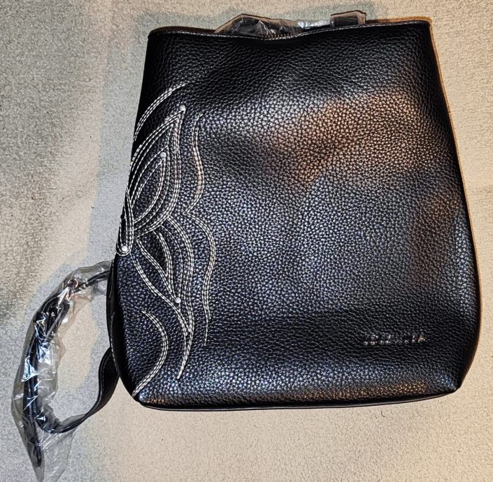 Elegantna ženska torba od kvalitetne umjetne crne kože s tri praktična pretinca. Nova je s etiketom, može se nositi kao ručna torba ili kao ruksak za razne prilike. Izvrstan modni dodatak koji će upotpuniti svaki outfit.