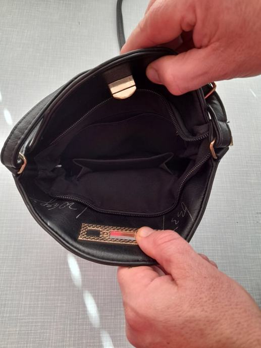 ženska crna kožna torba, dimenzija 22,5x18,5, vidi slike