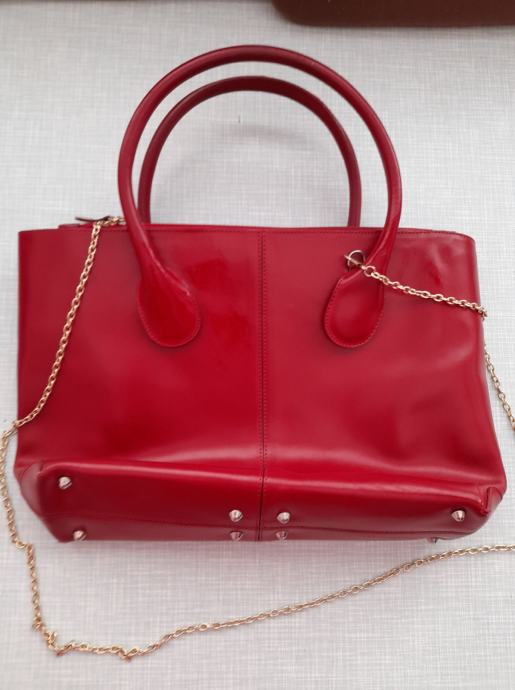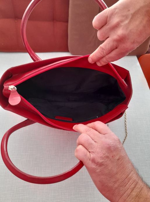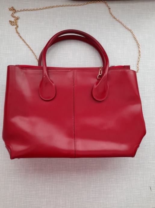 ženska crvena kožna torba, dimenzije 23x36, vidi slike