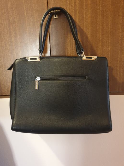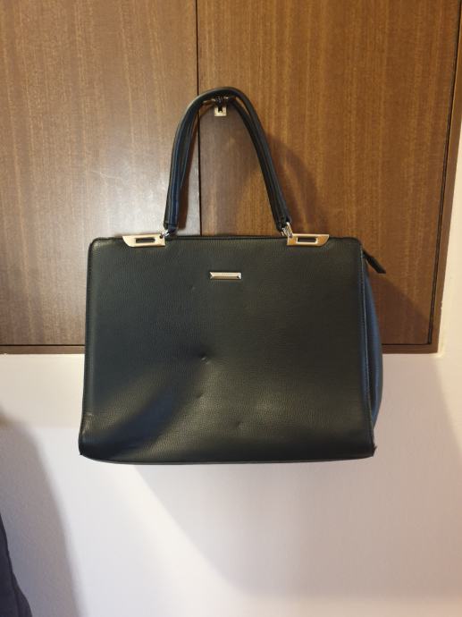 Ženska torba, crna, više pretinaca, veličine cca 30×30 cm
