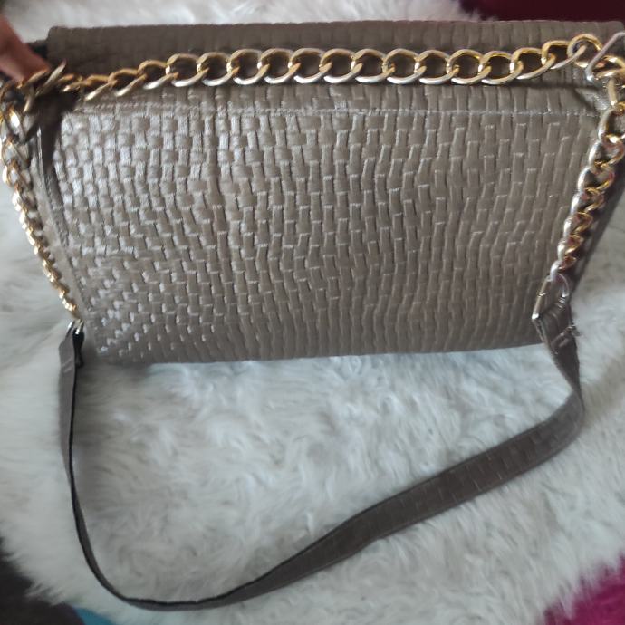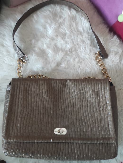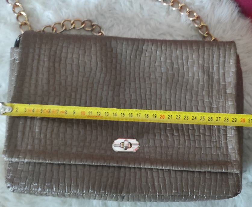 Prodajem žensku torbicu maslinaste boje sa zlatnom kopčom i zlatnim lancem, nošena. Dimenzije 30x20x8 cm (ŠxVxD). Pogledajte i moje ostale oglase, nisam za zamjene jer se rješavam viška.