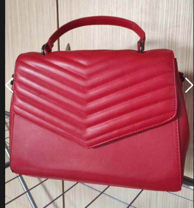 Crvena ženska torba s odvojivim remenom za rame.
