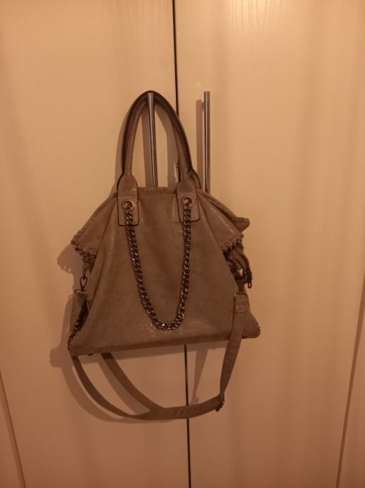 Jako lijepa ženska torbica , jedan unutarnji pretinac i dva mala.sive boje,jako uščuvana