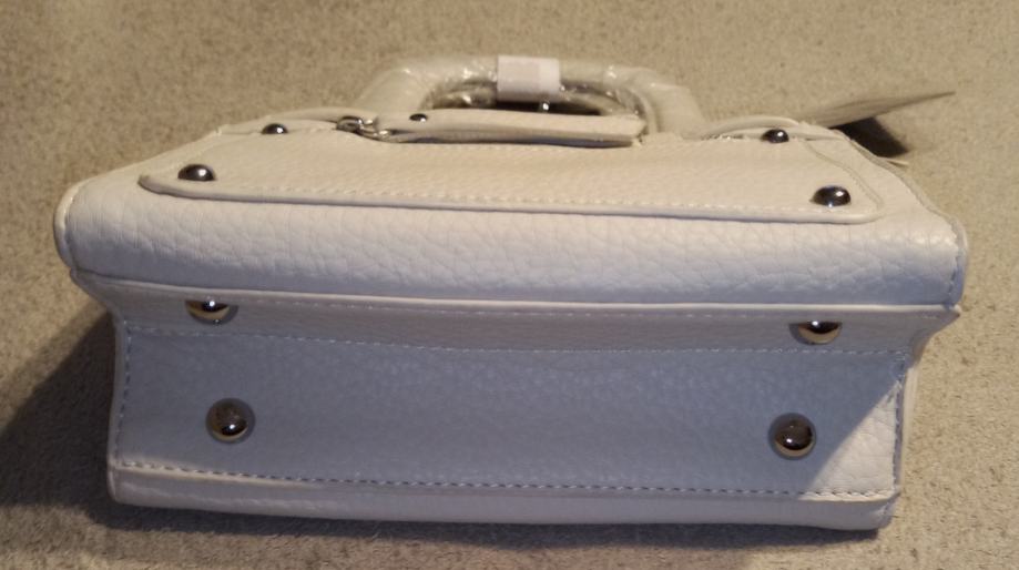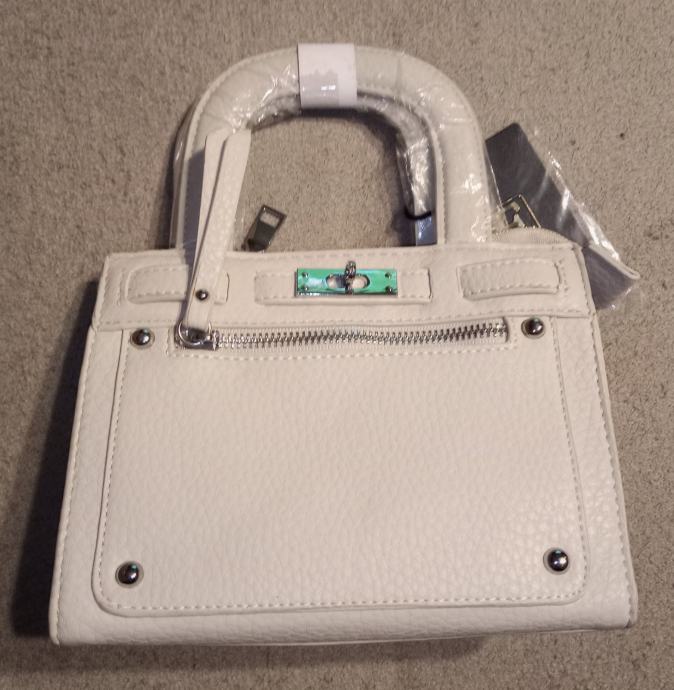 Nova elegantna ženska torba bijele boje s etiketom, nikad korištena. Moderna torbica s praktičnim gornjim zatvaračem i dekorativnim metalnim detaljima idealna je za svaku prigodu. Kvalitetna izrada i klasičan dizajn čine je savršenim modnim dodatkom za svaku garderobu.