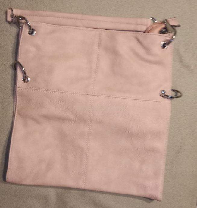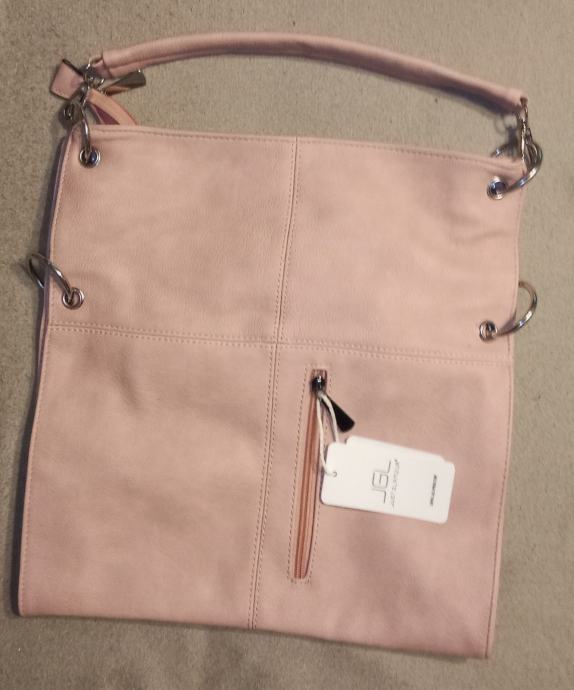 Nova ženska torba elegantne roze boje s etiketom, savršena za svakodnevne prilike. Ima praktičan džep s vanjske strane i metalne detalje koji joj daju moderan izgled. Udobna ručka omogućava lako nošenje, a materijal izgleda kvalitetno i lako za održavanje.