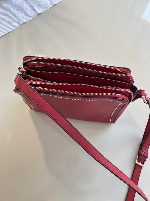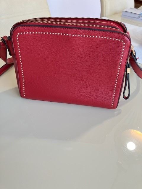 Prodajem žensku torbu marka Carpisa za na rame ,crvene boje sa ukrasnim zlatnim detaljem,dim. 24x18x7.Malo nošena,bez ikakvih oštećenja