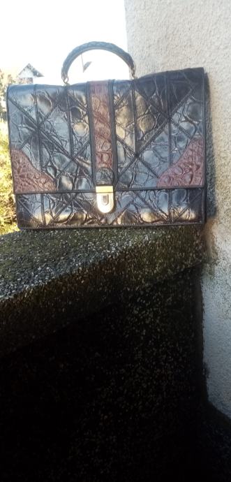 Torbica od prave kože smedja na ručku 34x25x8 nova.