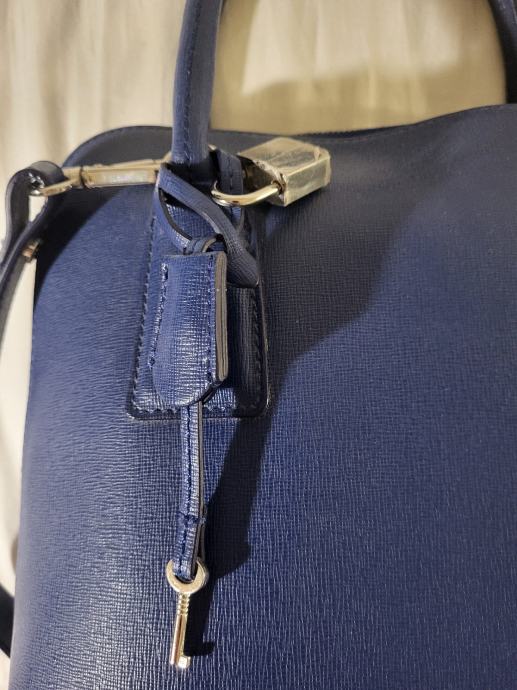 Ženska torbica Caroll, nova, nikad nošena, prava koža. Kratke ručkice i dugi remen, modra. Ima mali katanac sa ključićem. Dimenzije 27x23cm. Split