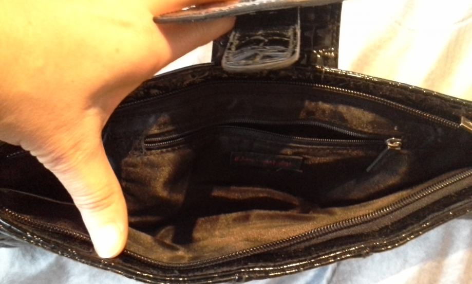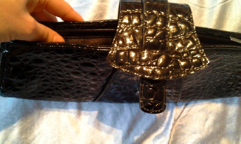 Nova lakirana crna pismo torbica Miss selfridges. dužine 33cm i visine 14cm