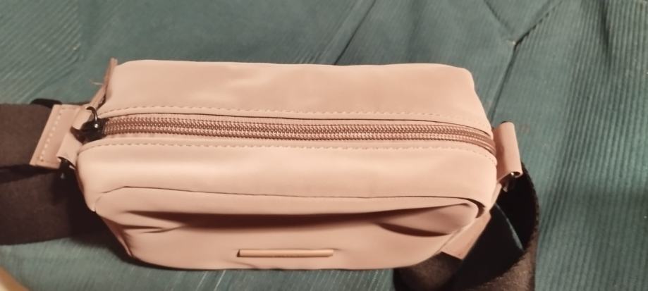 Prodajem novu žensku torbicu Pull&Bear. Torbica može na rame ili preko tijela. Tekstura je mekana, glatka i blago "gumirana". Torbica ima dugački podesivi remen i zatvaranje patentnim zatvaračem na vrhu. Ima horizontalnu metalnu pločicu s ugraviranim logotipom brenda. Veličina 18x12x7. Boja "prljavo"roza. Cijena 6 eura.