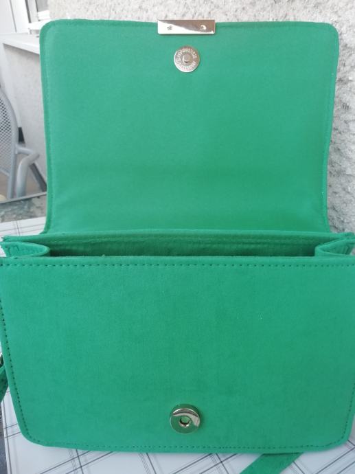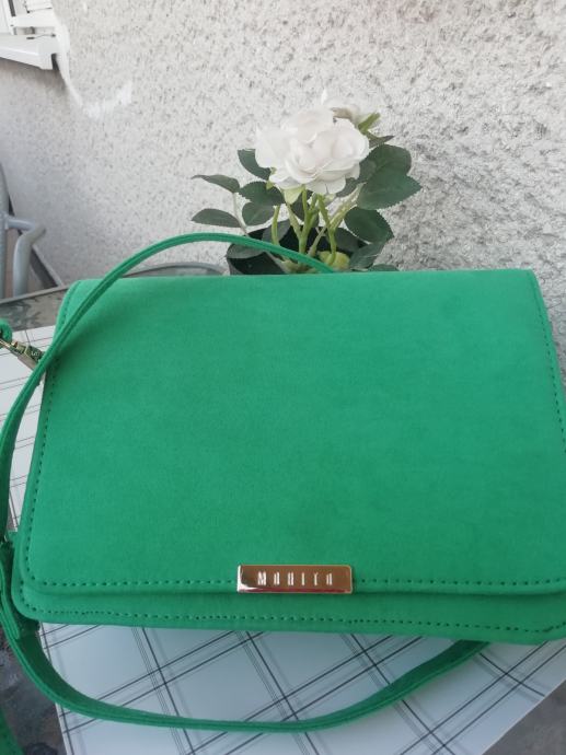 Ženska zelena torbica Mohito, dimenzije : širina 22 cm,visina 15 cm s podesivim remenom koji se može i skinuti, sa 2 unutarnja džepa, nova, bez etikete, trošak dostave snosi kupac, Obično predmet šaljem putem tiska nakon uplatili kako se dogovorimo