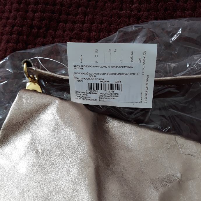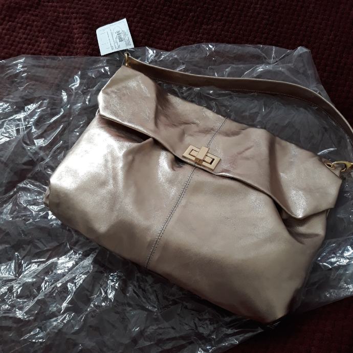 Nova torba s etiketom.kožna.moderna.zlatna i prostrana veća dosta stane u nju.