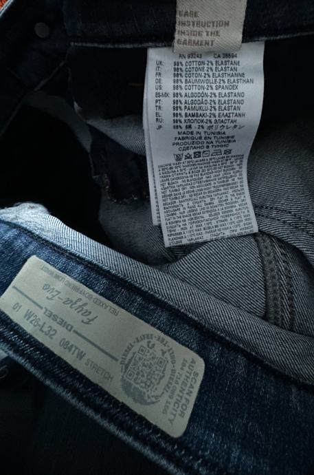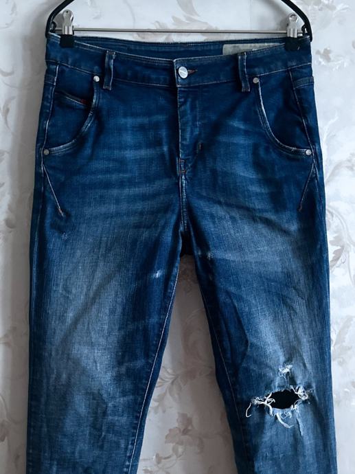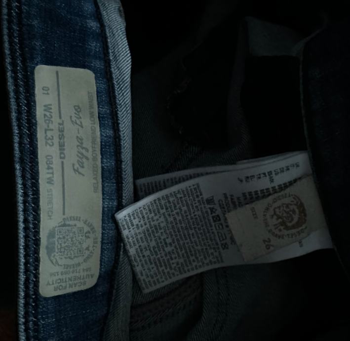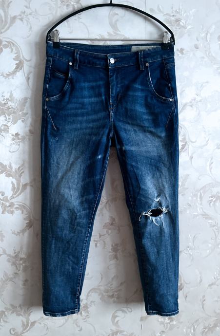 Deklarirano su 26, za 38, mjere: struk 39-41 cm, dužina 91 cm, nogavica iz prepona 65 cm, bedro oko 29 cm.