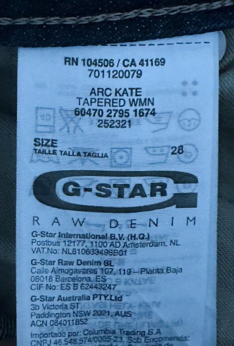 Mjere: struk 41 cm, dužina 97 cm, nogavica iz prepona 68 cm, bedro 31 cm, gležanj 16 cm.