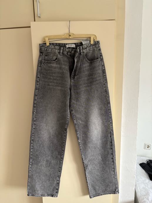 Prodajem sive duge traperice u veličini 38 (W28-W29). Radi se o trapericama širokih nogavica u sivoj ispranoj boji. Stanje je novo bez etikete, dakle nikad nošeno.