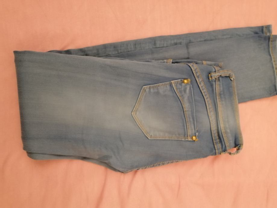 prodajem svijetlo plave traperice, vel. S. Sasatav: 80% pamuk i 20% elastin. Jako su udobne za nositi, ne gužvaju se i prilagođavaju se tijelu. Kratko nošene bez oštećenja i fleka.