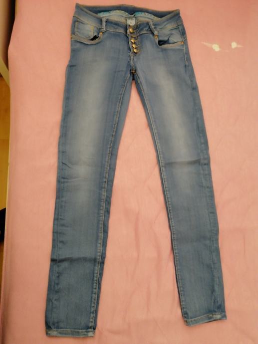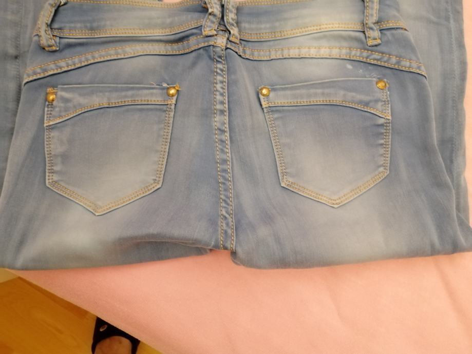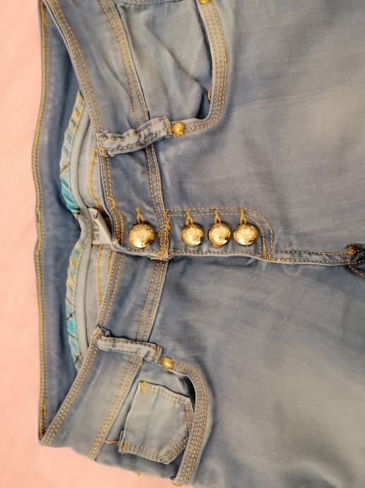 prodajem svijetlo plave traperice, vel. S. Sasatav: 80% pamuk i 20% elastin. Jako su udobne za nositi, ne gužvaju se i prilagođavaju se tijelu. Kratko nošene bez oštećenja i fleka.
