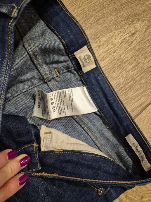 Timberland tamno plave isprane traperice, uski model sa patentom na dnu. Model Cedar Lake.